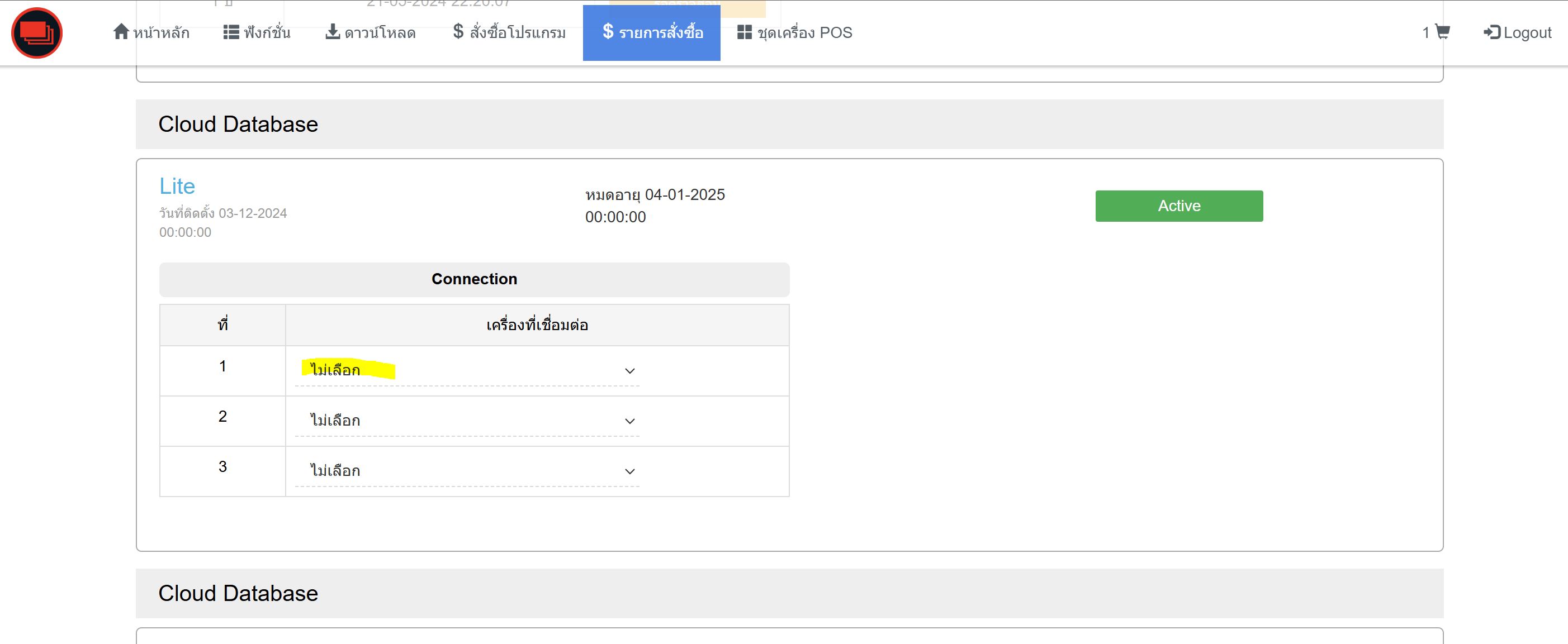 ทำการเลือกโปรแกรมขายหน้าร้านที่ต้องการเชื่อมต่อกับ Cloud Database