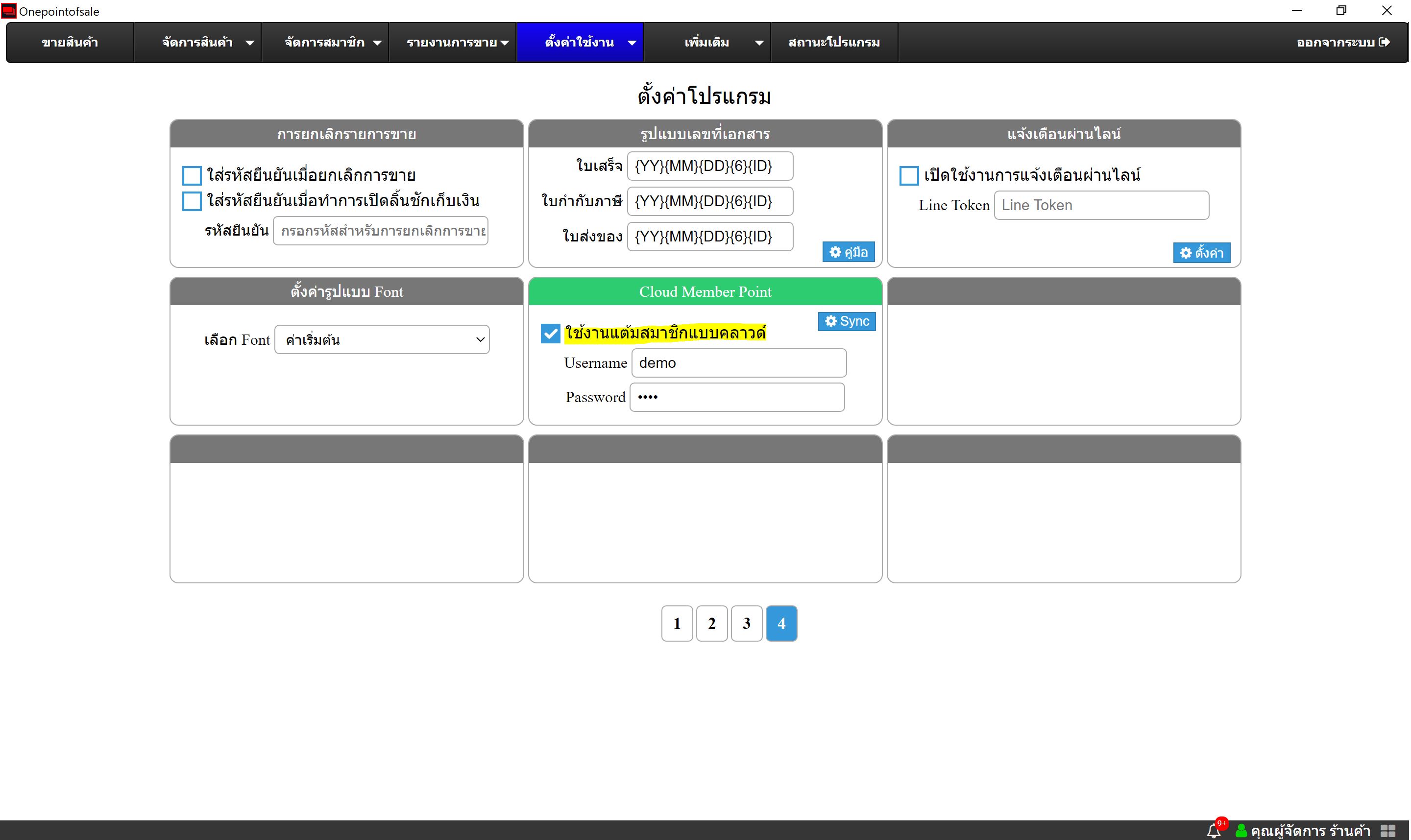 ทำการเปิดการตั้งค่าการใช้งานแต้มสมาชิกแบบคลาวด์โดยกรอก username และ password ทุกสาขาให้เหมือนกัน (หากต้องการใช้งานติดต่อแอดมิน