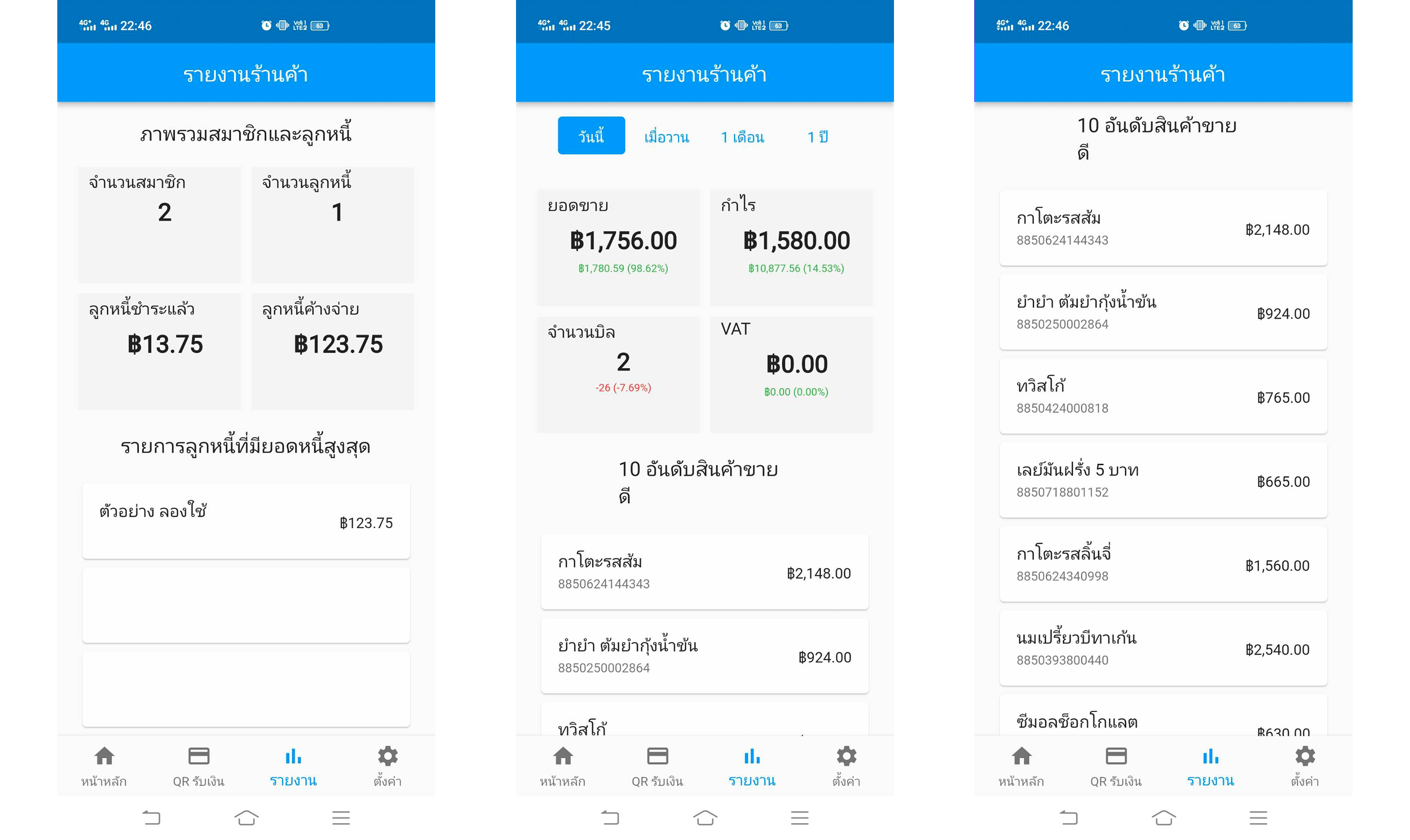 สามารถเรียกดูสรุปรายยอดขายสินค้า รายการสินค้าขายดี รายการยอดค้างจ่ายของลูกหนี้