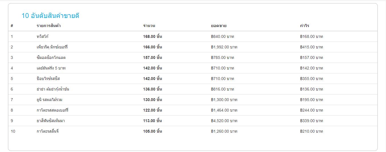 รายงานแสดง 10 อันดับสินค้าขายดีโดยใช้จากข้อมูลย้อนหลัง 1 เดือน
