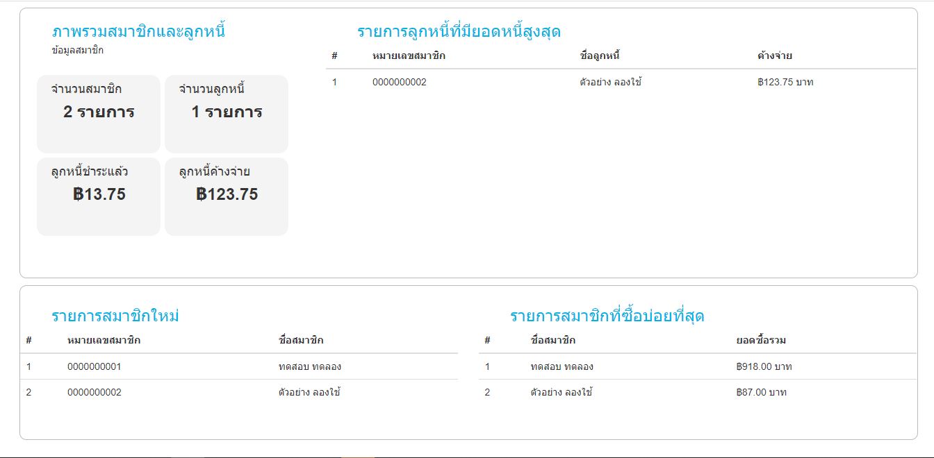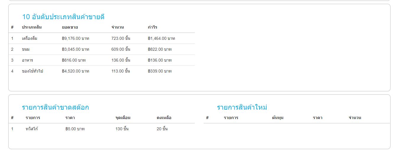 รายงานแสดงสรุปการขายสินค้า ประจำวัน ประจำเดือน โดยจะแสดงยอดขาย กำไร จำนวนบิลที่ขายได้