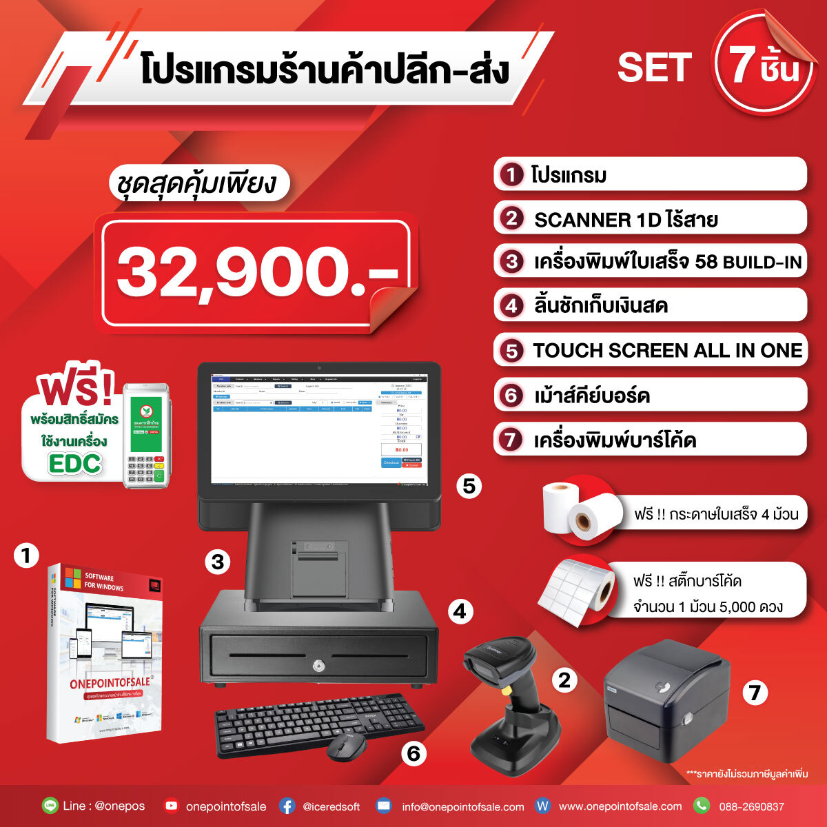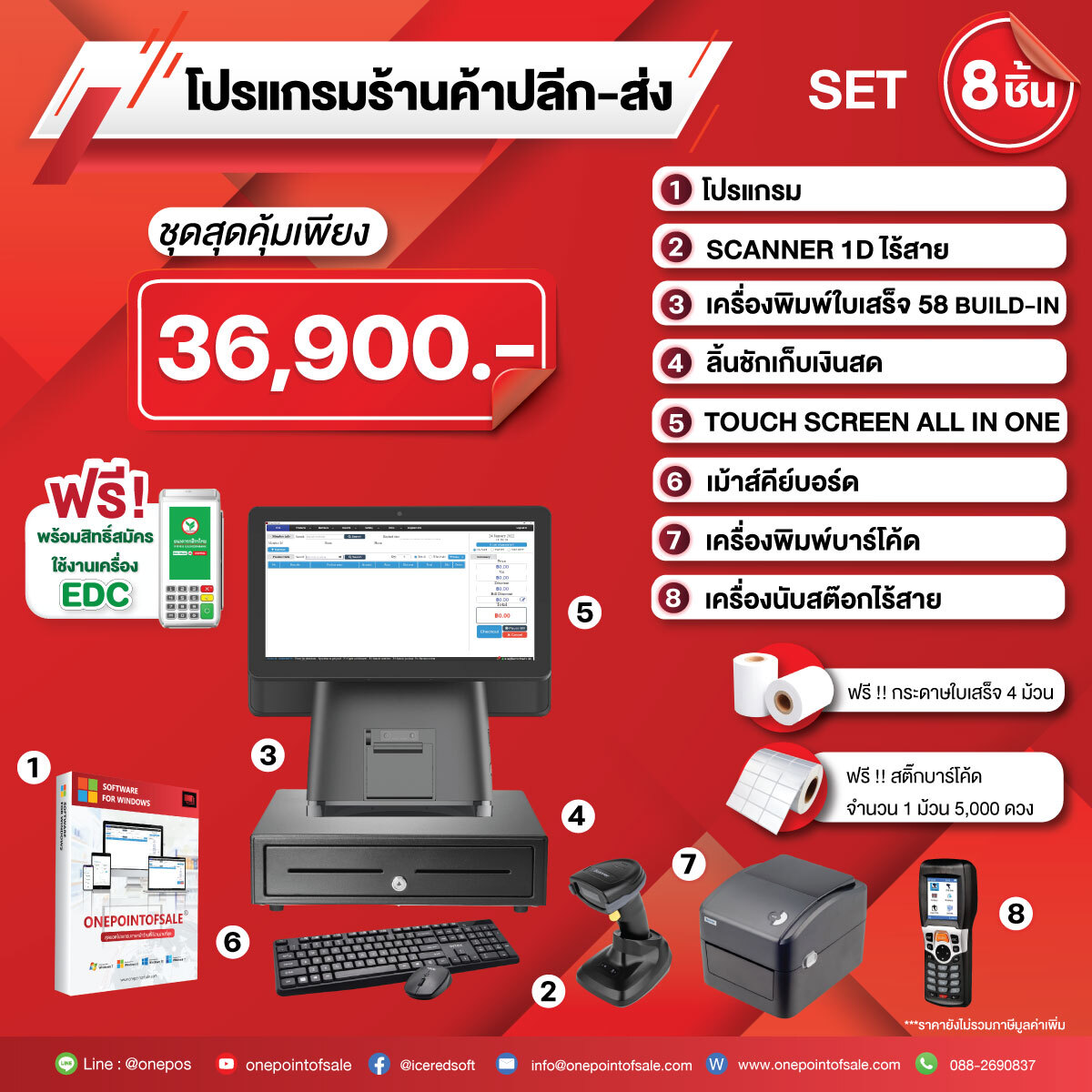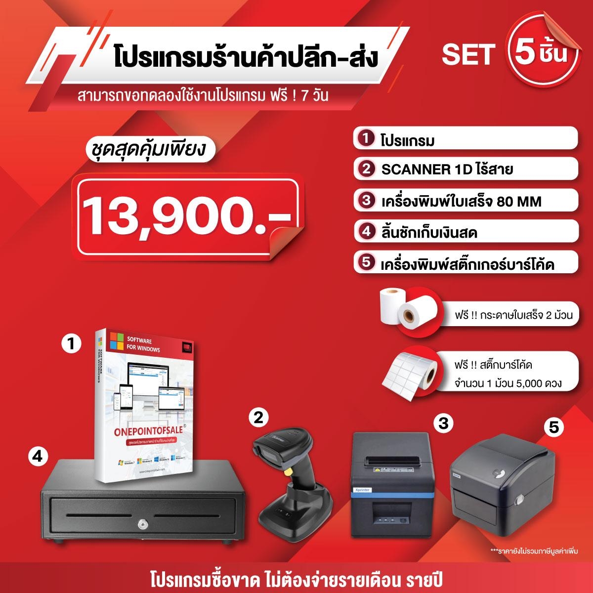 ชุดโปรแกรม POS พร้อมอุปกรณ์