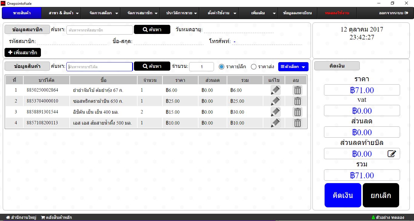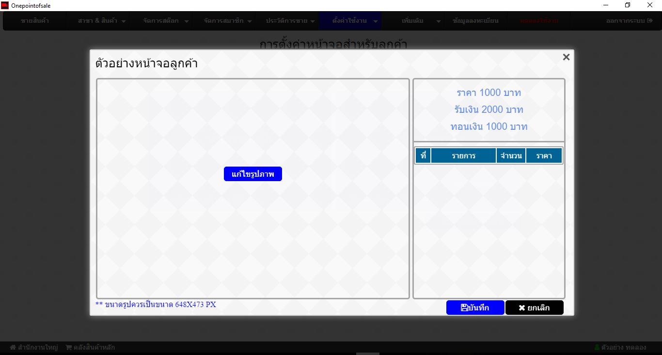 ตัวอย่างหน้าจอลูกค้า เมื่อทำรายการขาย