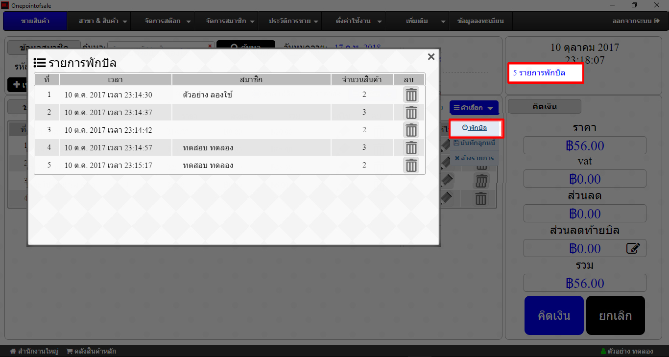 การพักบิลคืออะไร ? คือการพักรายการขายปัจจุบันไว้ก่อนเพื่อทำรายการขายสินค้าใหม่ และสามารถย้อนกลับมาขายสินค้าเดิมต่อได้ เหตุการณ์นี้จะเกิดขึ้นเมื่อ ลูกค้าเดินมาคิดเงินแต่ยังเลือกสินค้าไม่เสร็จ สามารถทำรายการขายสำหรับลูกค้าคนได้