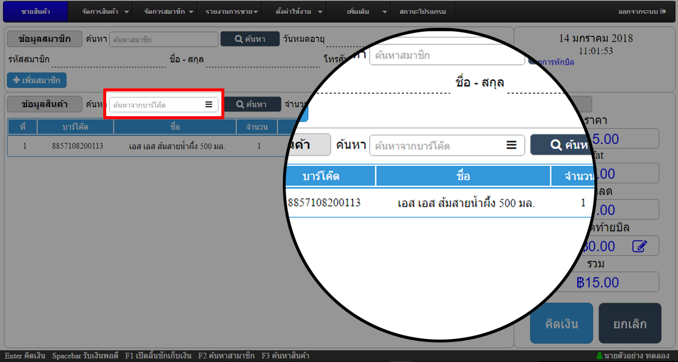 การขายสินค้าสำหรับท่านที่ไม่มีเครื่องอ่านบาร์โค้ด