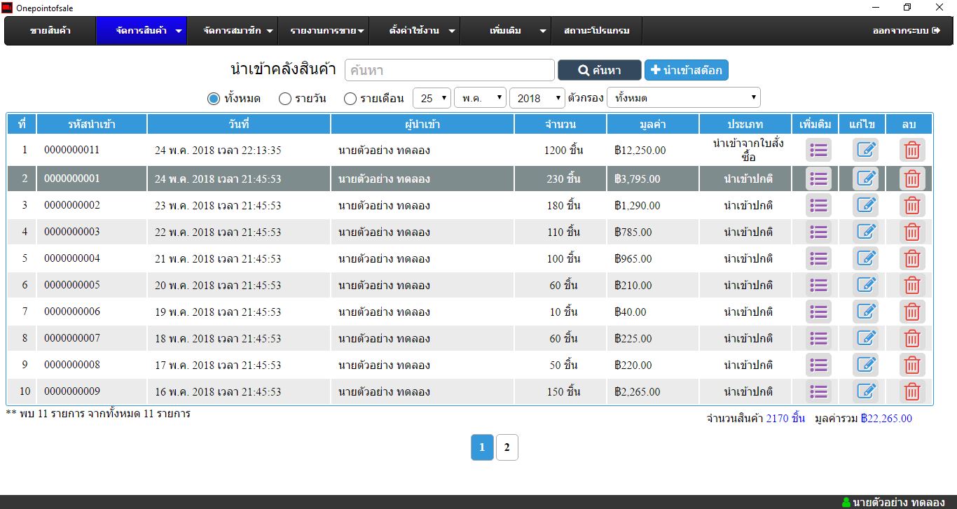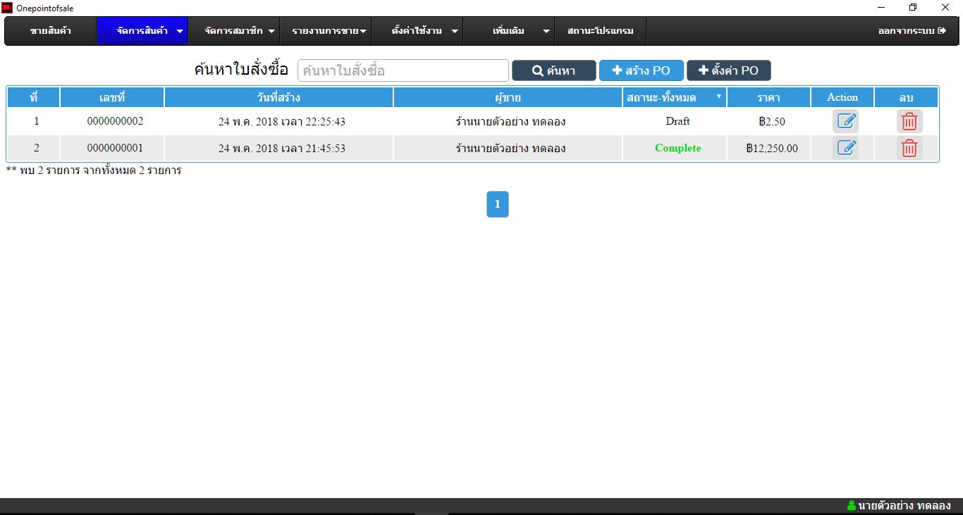 หน้าโปรแกรมที่แสดงรายการใบสั่งซื้อและสามารถค้นหาจาก เลขที่ใบสั่งซื้อ สามารถแก้ไขรายการใบสั่งซื้อสินค้าจากหน้านี้ได้